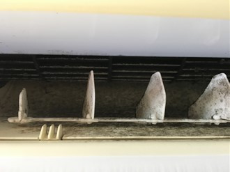 画像を見ればお分かりの通り、お掃除エアコンであっても送風口は汚れます。特に送風口が元は白色なので、このようにカビで黒くなってくるととても気になります!