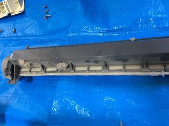 これがフィルター掃除をしてくれる部分です!お掃除ロボットやお掃除ユニットと呼ばれるところですね。このお掃除ロボットを外さないと、熱交換器と呼ばれる部分のお掃除(高圧洗浄)ができないので、外します。
