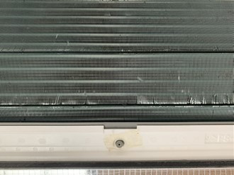 とても薄いので、指やブラシで触ると簡単に曲がってしまいます。アルミの目に沿って上から下に、汚れをかきとっても汚れを奥に押し込めるような形になってしまい。それは綺麗に出来たことにはなりません。