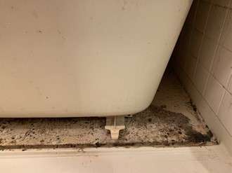 浴槽の手前にはエプロンと呼ばれるカバーついています。エプロンで隠れているから普段は分かりませんが、エプロンを外すとこのようにカビやヌメリでとても汚れていることが多いです。お風呂の種類によってはお風呂のエプロンカバーがないのがあったり外れないのもありますが、外れるタイプの時はできたら半年に一度ぐらいはエプロン内部のお掃除をした方がいいです。