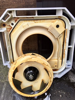 しかも、こちらのお店は店内で喫煙可能ですのでタバコのヤニ汚れもついています。画像を見てみればお分かりのように真っ黄色に汚れていますね。外した部品の洗浄&内部の高圧洗浄をして綺麗にしていきます。