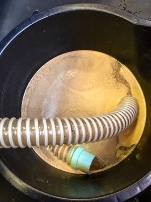 こちらはエアコン内部を高圧洗浄機で洗浄した時に出てきた汚水です。カビやホコリに加えて、油・ヤニの汚れが出てきて汚水が黄色いです。洗浄前はエアコンを使用すると、タバコの臭いや・カビの臭いがして、とてもいい匂いとは言えない状態でしたが、洗浄後は改善されました?