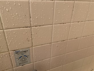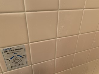 浴室内の壁がタイルの場合、タイルの目地がこのようにカビで黒くなってきてしまいます。あまりにも年数がたっていると、カビの色が着色してしまって、白く元に戻らなくなるので、早めにカビキラーなどで対処しましょう。