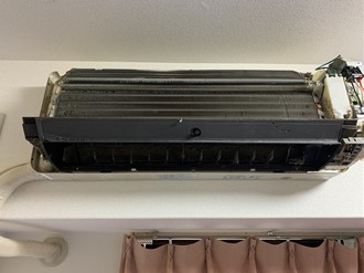 こちらのエアコンになりますが、、、前面パネルを外した時に「あっ!写真」と思って撮ったので、前面パネルを外した状態です(笑)