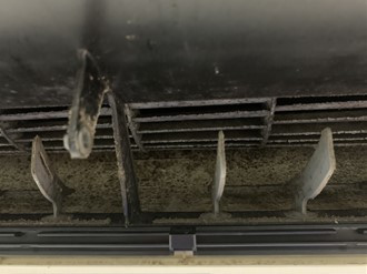 このようにエアコン送風口も真っ黒ですね。。。このエアコンを購入されてから10年ぐらいたったようですが、エアコンクリーニングをされるのは今回が初めてのようです。