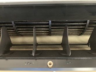 このように熱交換器は少しホコリがついていただけで、とてもきれいな状態ですね。