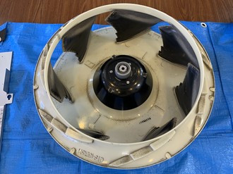次はファンを清掃します。この丸いのがファンです。これが回転することでエアコンから風がでてきます。ファンもホコリやカビで黒く汚れていますね。