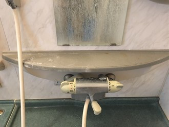 カランまわり・カランやシャワーも最初は艶があってピカピカしていたのに、いつの間にか石鹼カスや水垢で白くくすんでしまいます。石鹼カスや水垢を除去することで、元通り艶もでて綺麗になります。