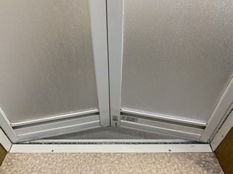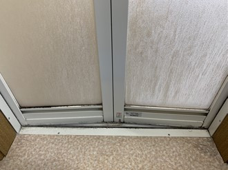 扉・扉のカビやレールに出来た頑固な水垢のカタマリも専用洗剤でしっかりと除去します。