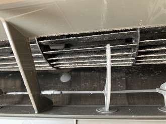 こちらは、エアコンの送風口の画像です。一年前にクリーニングしていますが汚れていますね。どうやら、コロナの影響でお仕事が在宅ワークになったので家にいる時間が増えて、日中もずっとエアコンを使われていたそうです。
