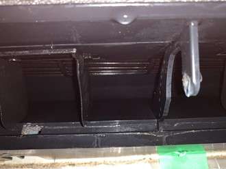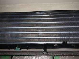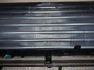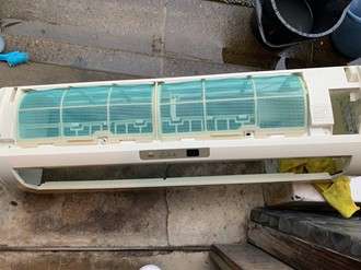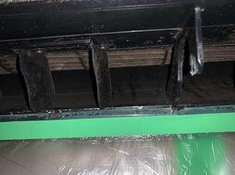 ちょっとわかりにくいですが(笑)エアコン内部の熱交換器の汚れです。お店では揚げ物料理を多くされ、喫煙も可能なので熱交換器や部品も茶色く汚れています。この熱交換器にもホコリがついたりカビが発生します。
