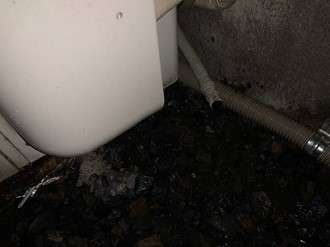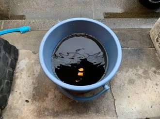 それを、力強く引いてドレンホースからドレンクリーナーを外すと、汚れた黒い水とホコリのカタマリが流れてきます。出てきたホコリのカタマリが原因で水が排出されなかったので、ドレンホース内が綺麗になったことでエアコン内部の結露した水がスムーズに流れるようになります。