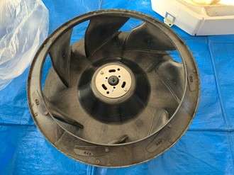 これは、ファンです。このファンが回ることでエアコンから風が出てきます。このファンにもホコリやカビが付着していて白っぽく汚れています。表側・裏側もくまなく綺麗にします。ファンの羽根の部分は薄くなっているので破損しないように慎重に扱い洗浄します。万が一、羽根が一部でも破損してしまえば回転のバランスが崩れて異音がします。なので、気をつけて取り扱いましょう。