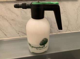 これは私がいつもお風呂のお掃除をする時につかっているものなんですが、【ガーデンスプレイヤー】というもので、この中に洗剤を入れて、上のレバーを上下に動かすとボトルの中に空気が圧縮されて、ハンドルを押すと洗剤がシューッと出るので、普通のスプレーで何回もハンドルを握るよりかは楽です(^^)