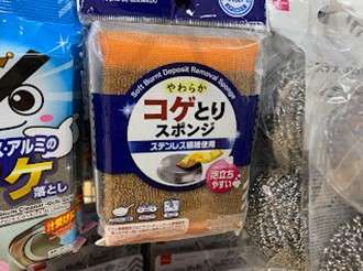 これはダイソーなどの100円ショップで買えるのですが、本来は鍋やフライパンなどの焦げ付きを取るものです。スポンジとスチールタワシが合体したようなもので、洗剤もよく含みますし頑固な汚れを取るのには適しています。