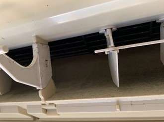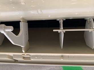 送風口はこのように少し、カビで黒くなっています。エアコンをつけたときの嫌なニオイの原因はこういった内部の汚れが原因です。