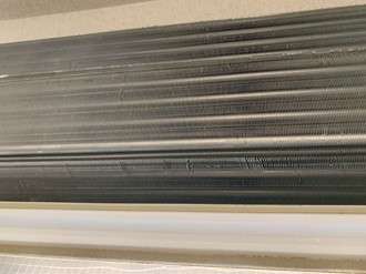 熱交換器も見た目はホコリも詰まっていないので、綺麗な状態ですね。しかし、見た目が綺麗でも高圧洗浄機でクリーニングすると汚れが出てくることがあります。