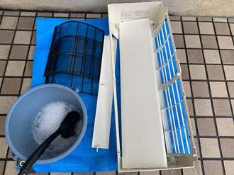 強アルカリ性の洗剤を吸い込むと、むせたり咳が出るので使用するときはマスクが必須です。もしエアコンクリーニング中の洗剤のすすぐ作業が不十分でエアコン内部に強アルカリ性の洗剤が残っていると、それが原因でエアコンの部品の劣化が進みます。(しっかりとすすぎができていれば問題ありません。)