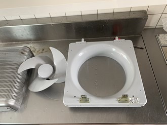 レンジフードの清掃をするのに、コンセントを一ヶ所・外した部品を洗うのにキッチンシンクをお借りして洗います。ご協力をお願いします。